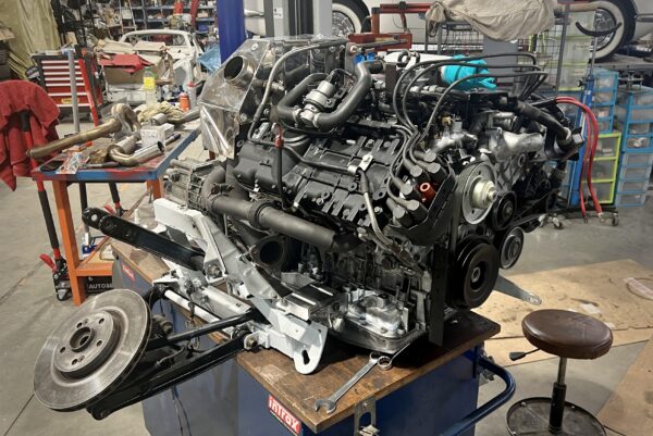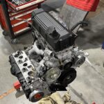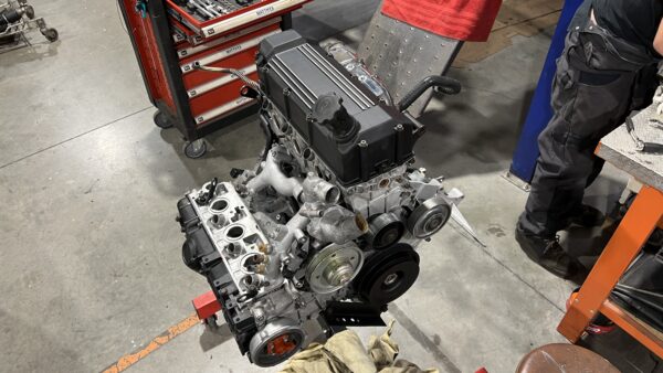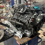 Moteur déposé et ouvert pour une révision approfondie.
